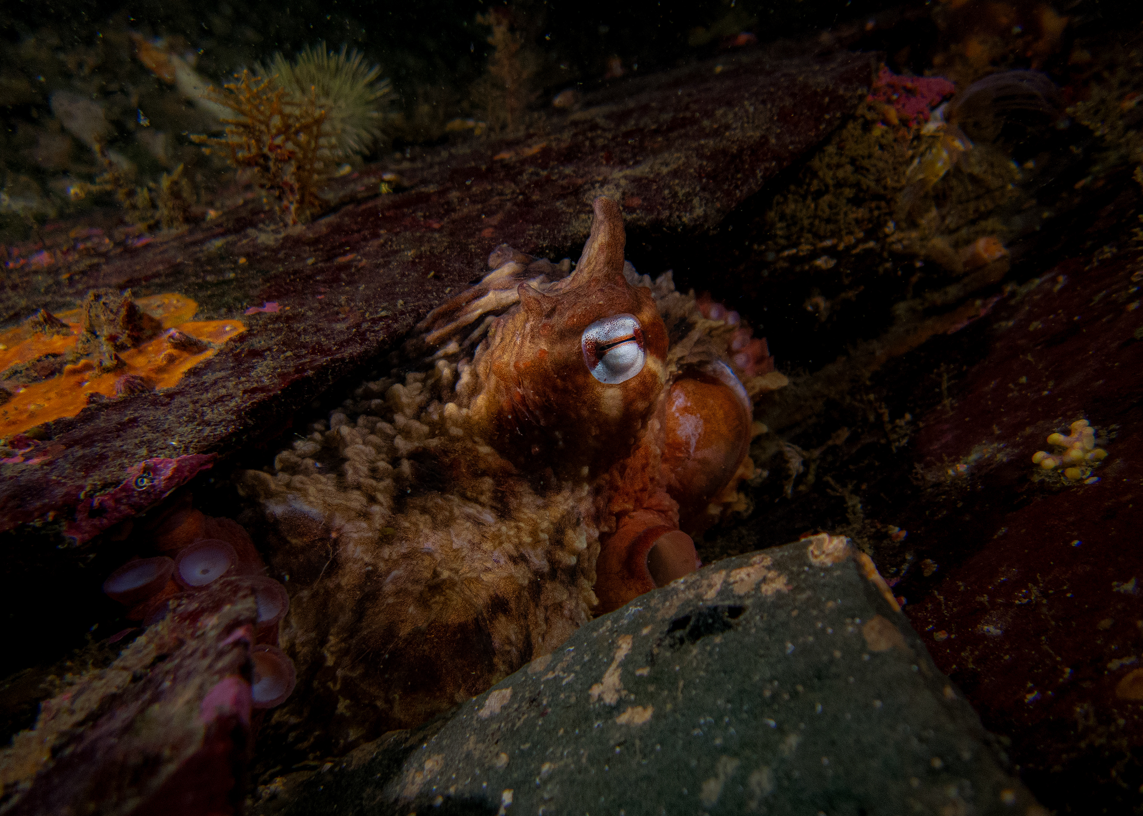 Even the largest octopus in the North Pacific begins small, cautious, watchful, and dependent on whatever shelter the environment provides.