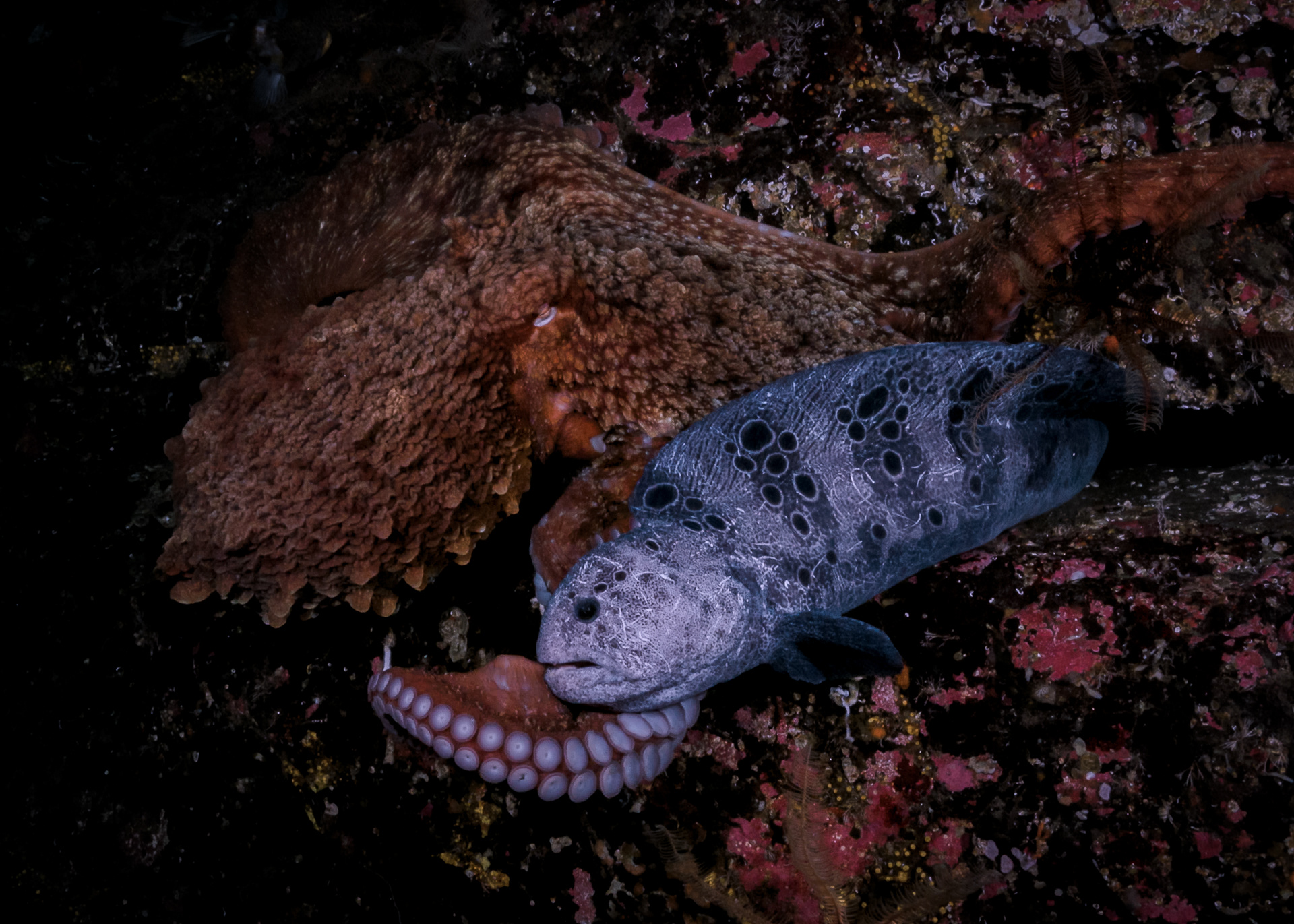 From fragile juveniles seeking shelter to adults spanning metres across the seafloor, the Giant Pacific Octopus embodies both vulnerability and strength. These images document moments across that spectrum.